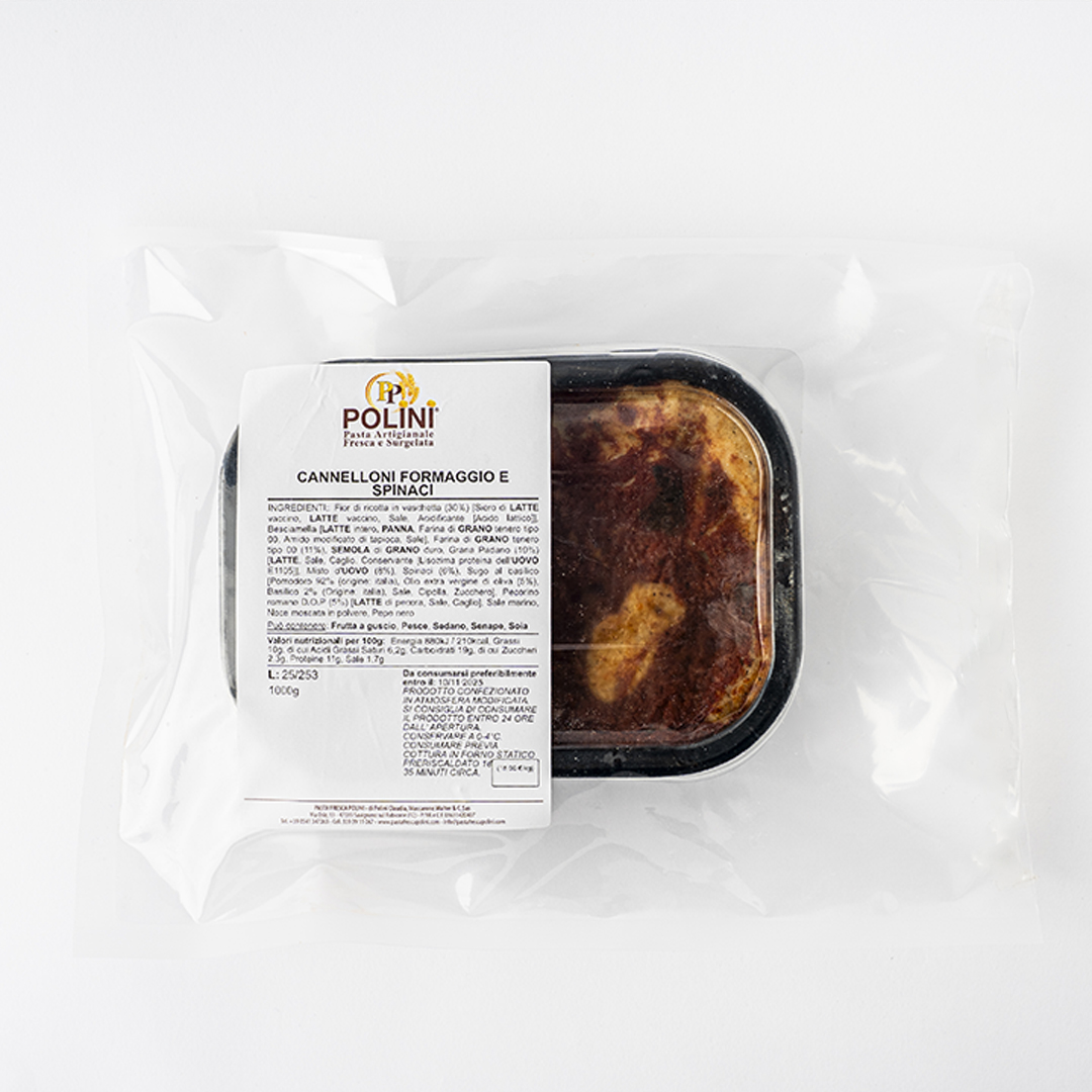 Cannelloni formaggio e spinaci – porzione 700 gr. circa